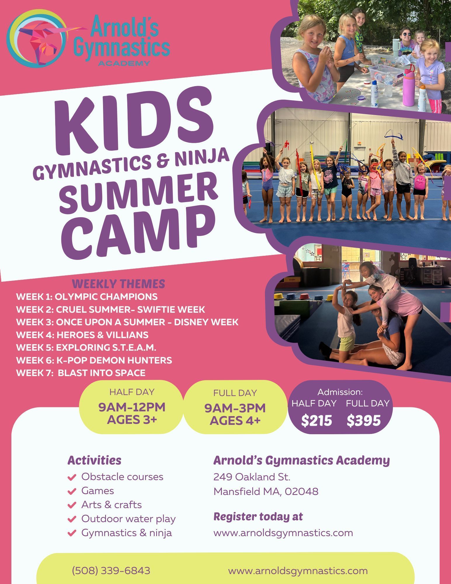 We begin each day with an obstacle course followed by gymnastics and ninja instruction. Campers then break for snack, craft and some fun & games. After lunch, afternoon camp focuses on mainly athletic instruction and, of course, some more fun!